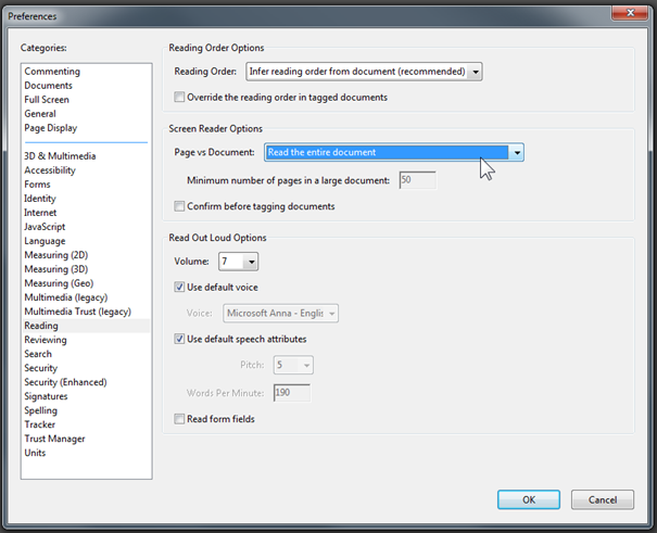 To check the accessibility of a PDF document, see the accessible PDF section of our site.