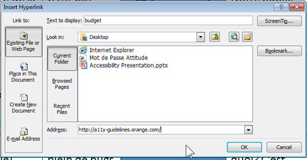 If necessary, add a ScreenTip by clicking on the ScreenTip button.