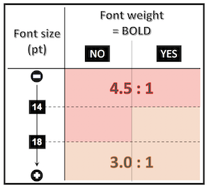 With Dynamic Type whose purpose is to adapt the font size according to the user settings, the contrast isn't necessary fixed and must be adapted to the text size.