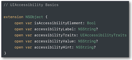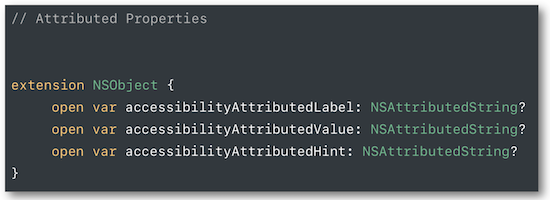 Attributed Accessibility Properties (26:07) ⟹ iOS 11 new feature