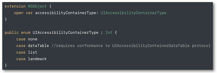 Accessibility Container Type (27:20) ⟹ iOS 11 new feature
