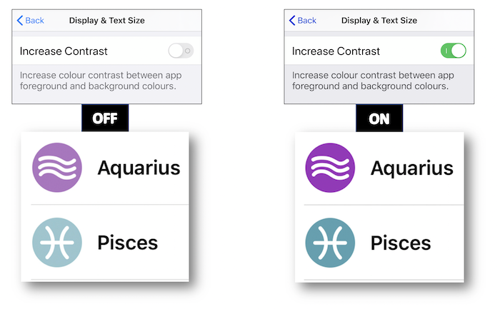 This video available on the official Apple website (session 10020) talks about some of the great ways that your app can provide for a visual experience that is inclusive to everyone.