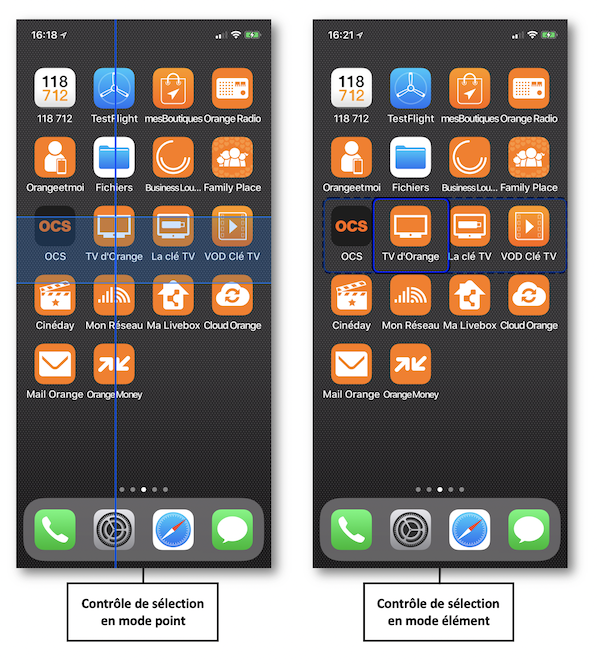 L'utilisation du contrôle de sélection s'articule autour du mode point et du mode élément.